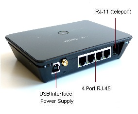 terdapat 1 buah port RJ-11 untuk disambungkan ke pesawat telpon