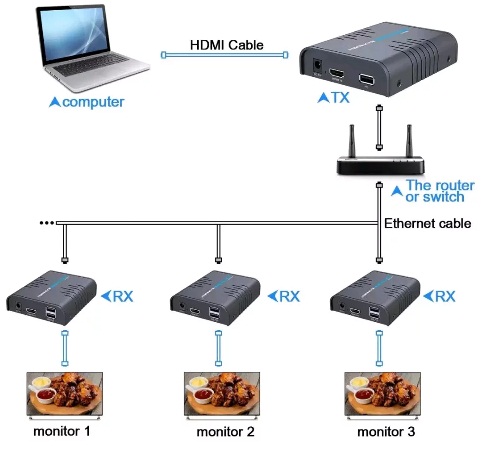contoh aplikasi, misalnya di satu gedung terdapat banyak layar TV di